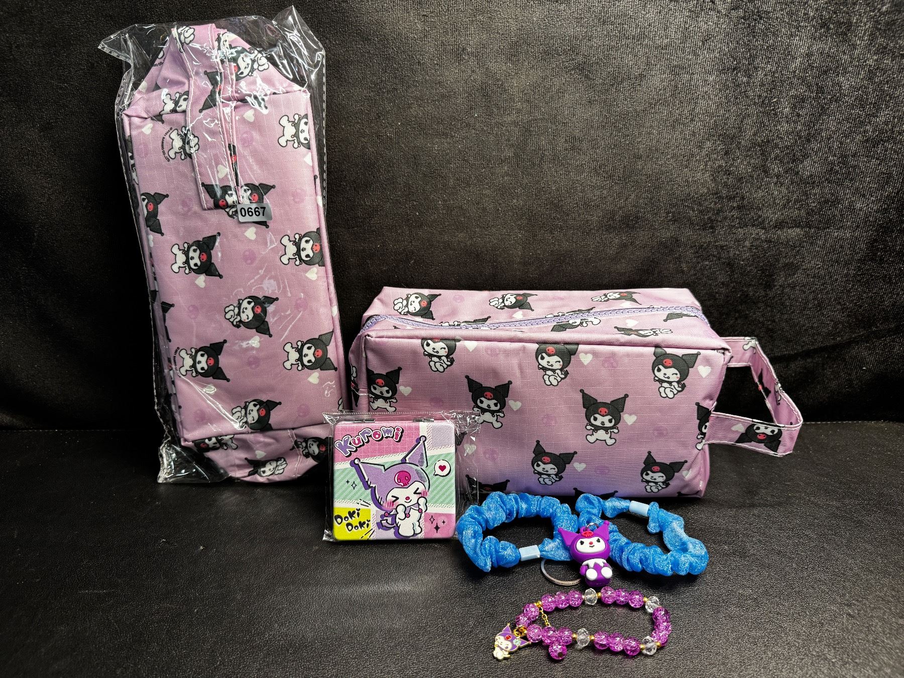 2 Kuromi 6PC Kawaii Cosmetic Bag Sets with Accessories - Brand New!