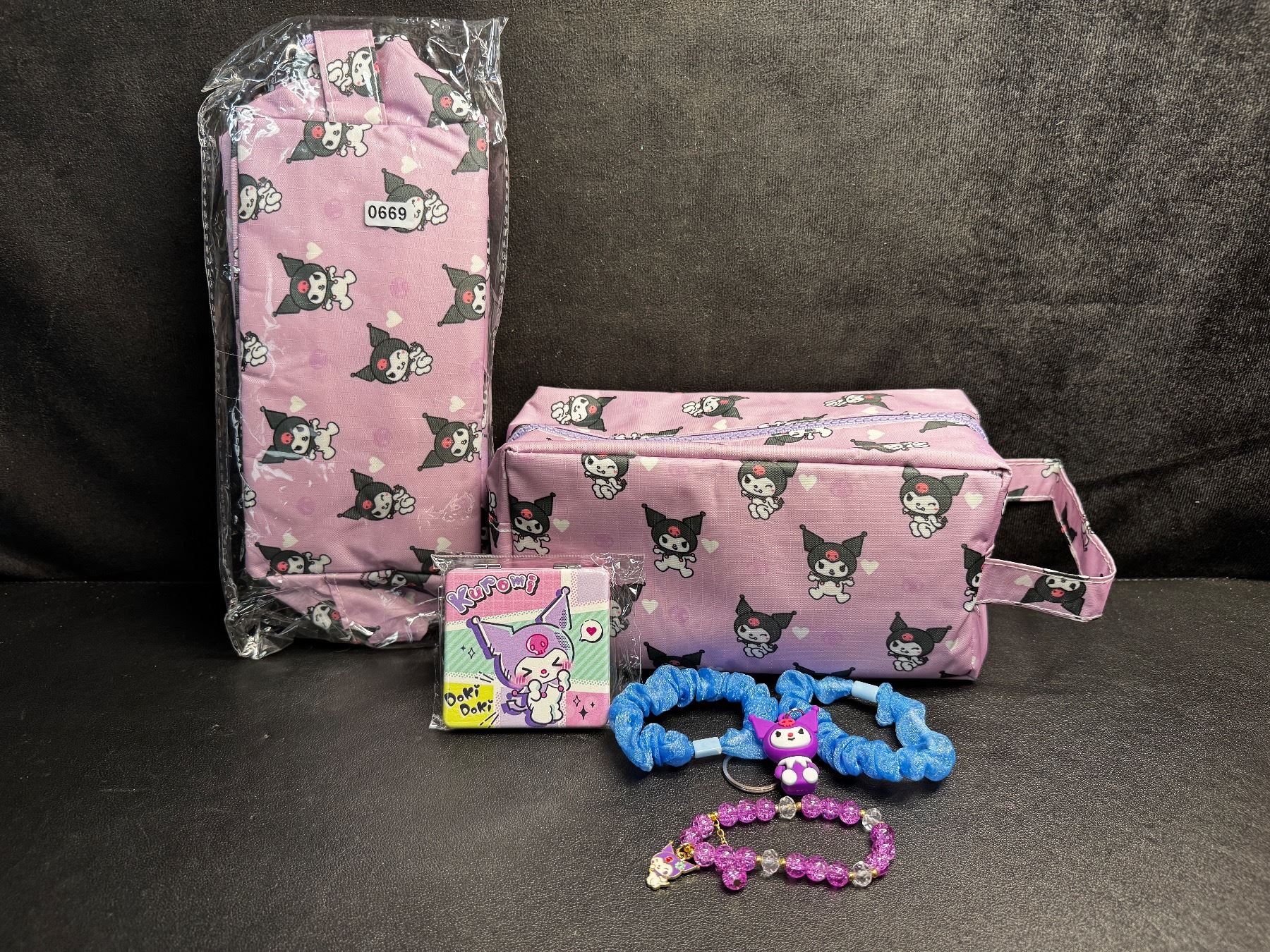 2 Kuromi 6PC Kawaii Cosmetic Bag Sets with Accessories - Brand New!