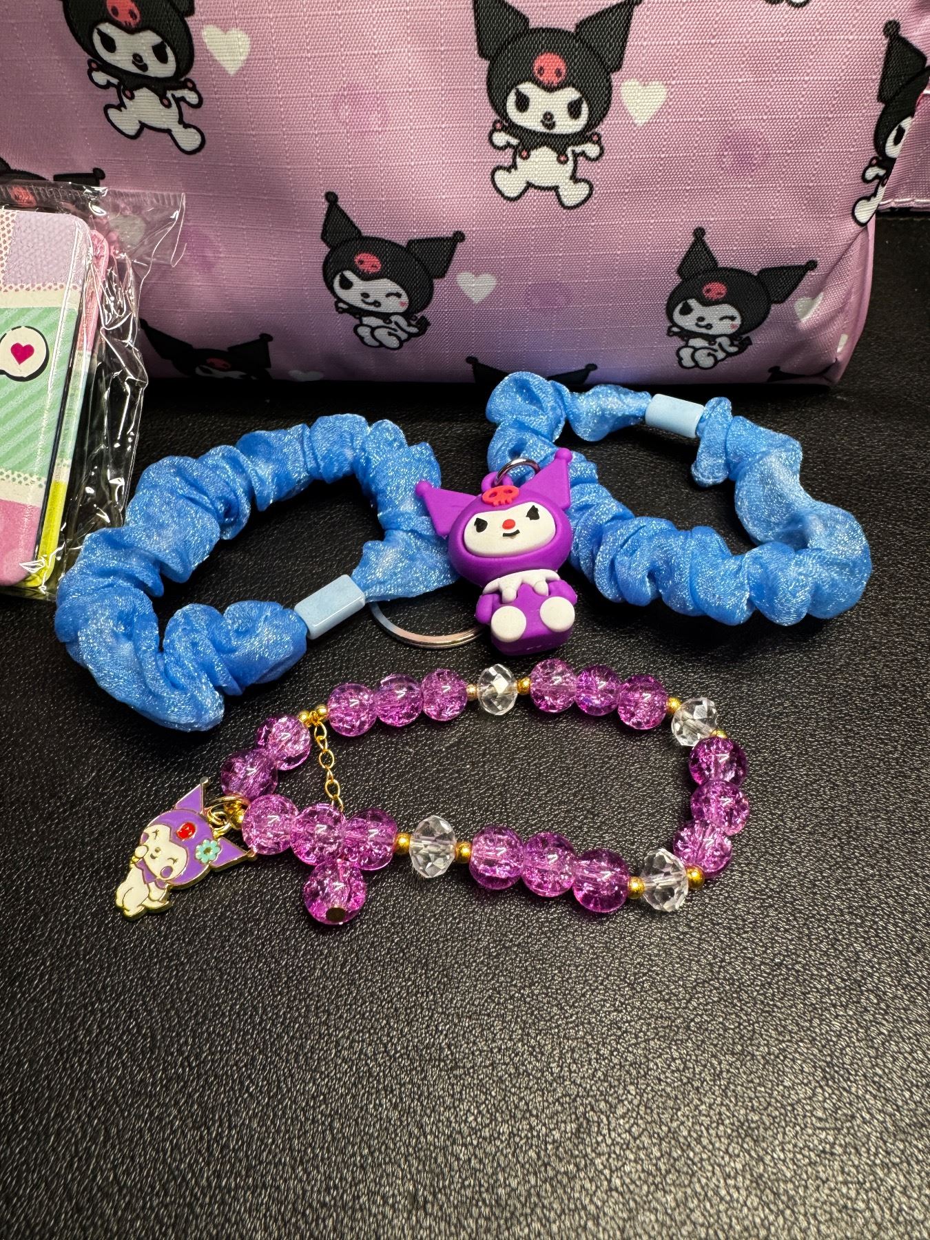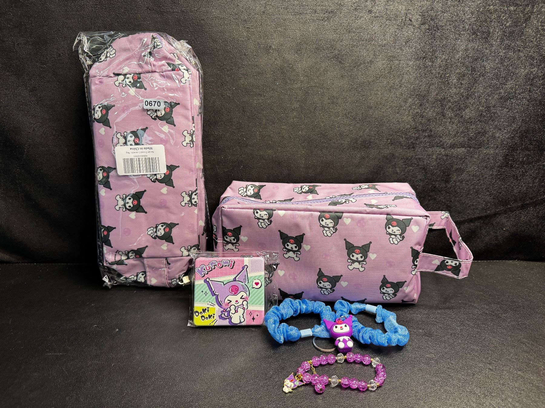 2 Kuromi 6PC Kawaii Cosmetic Bag Sets with Accessories - Brand New!