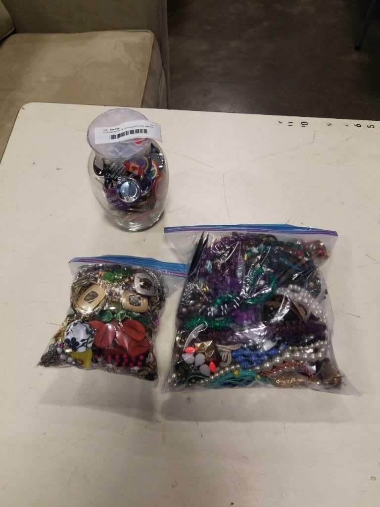 2 LARGE BAGS OF JEWELLERY AND JAR OF PINS