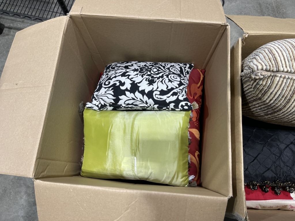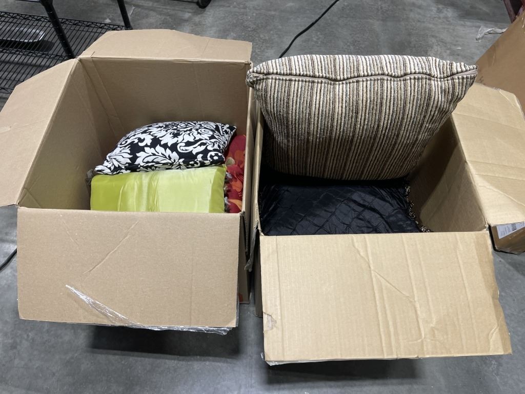 2 LARGE BOXES OF DECORATIVE PILLOWS