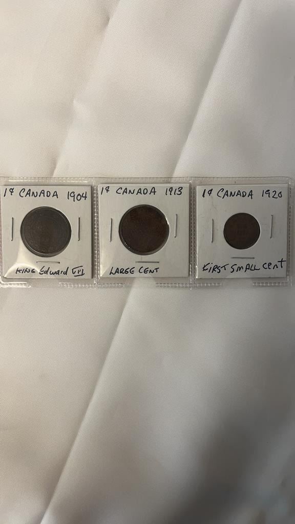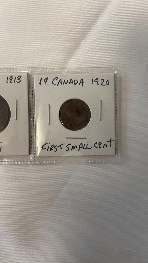 2 LARGE CANADIAN CENTS AND FIRST SMALL CENT 1920