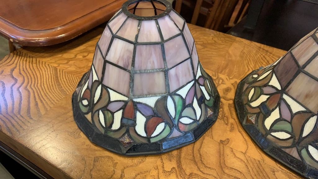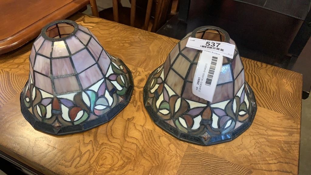 2 LEADED GLASS SHADES