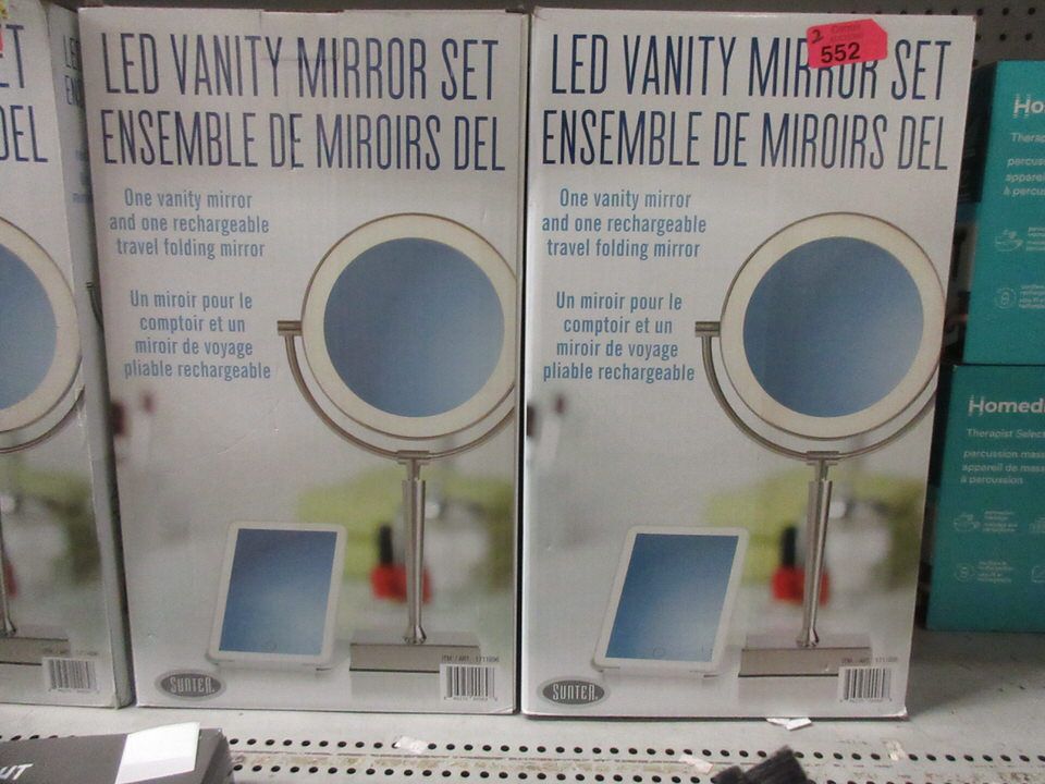Includes 1 vanity mirror & 1 rechargeable folding travel mirror