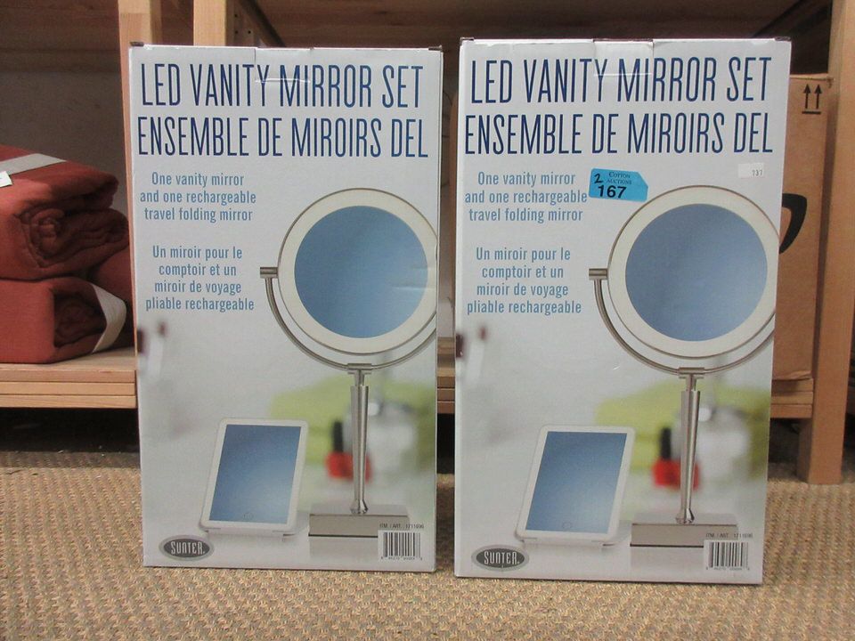 Each set contains: 1Illuminated vanity mirror and 1 rechargeable folding travel mirror.