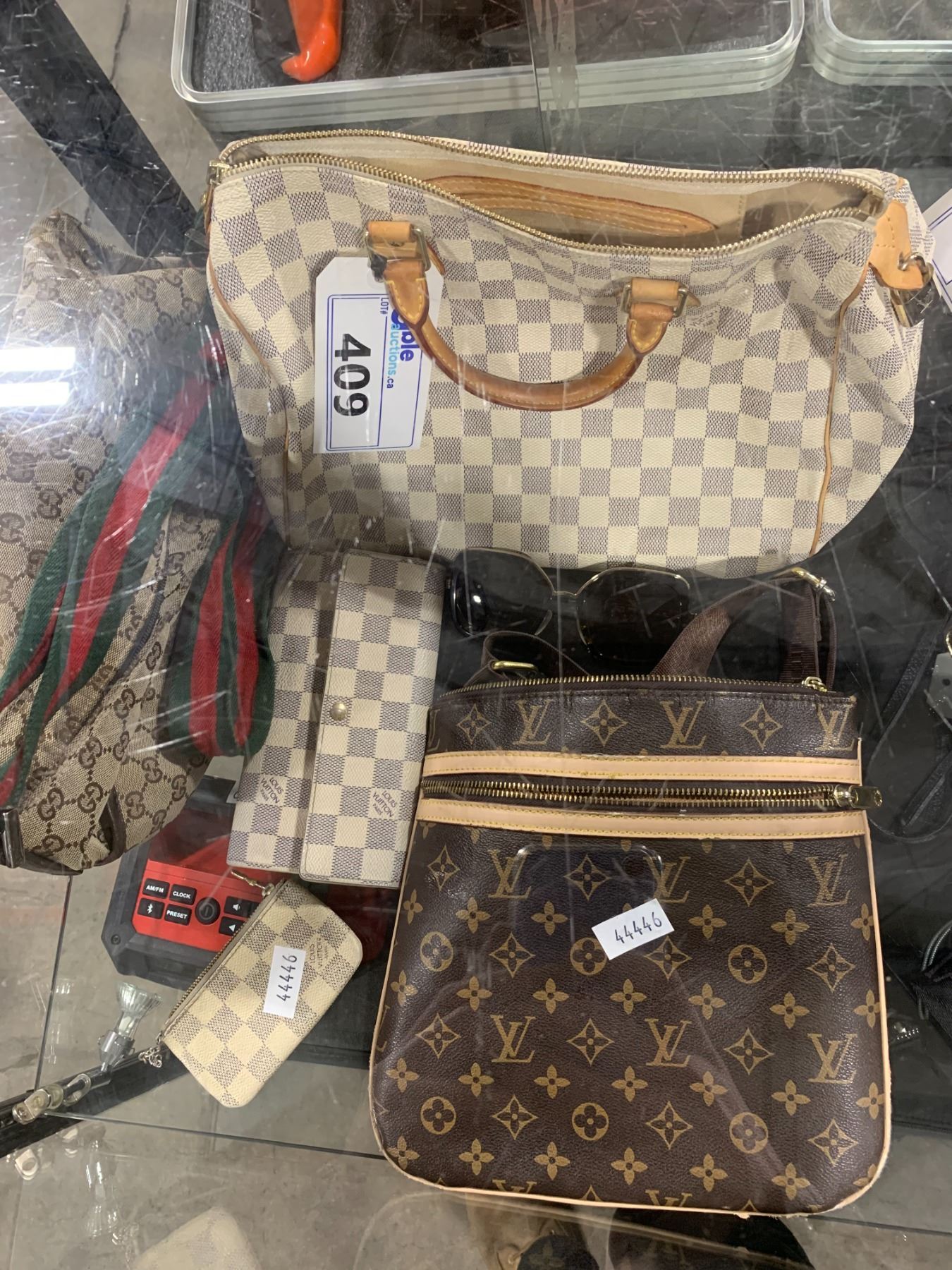 2 LOUIS VUITTON PURSES, 2 LOUIS VUITTON WALLETS & GUCCI BAG *AUTHENTICITY UNKNOWN*