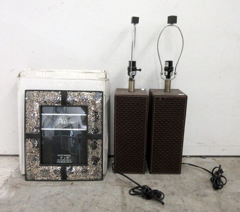 Bella Casa 12" x 15" frames are to fit 8" x 10" photos. Lamps have no shades.