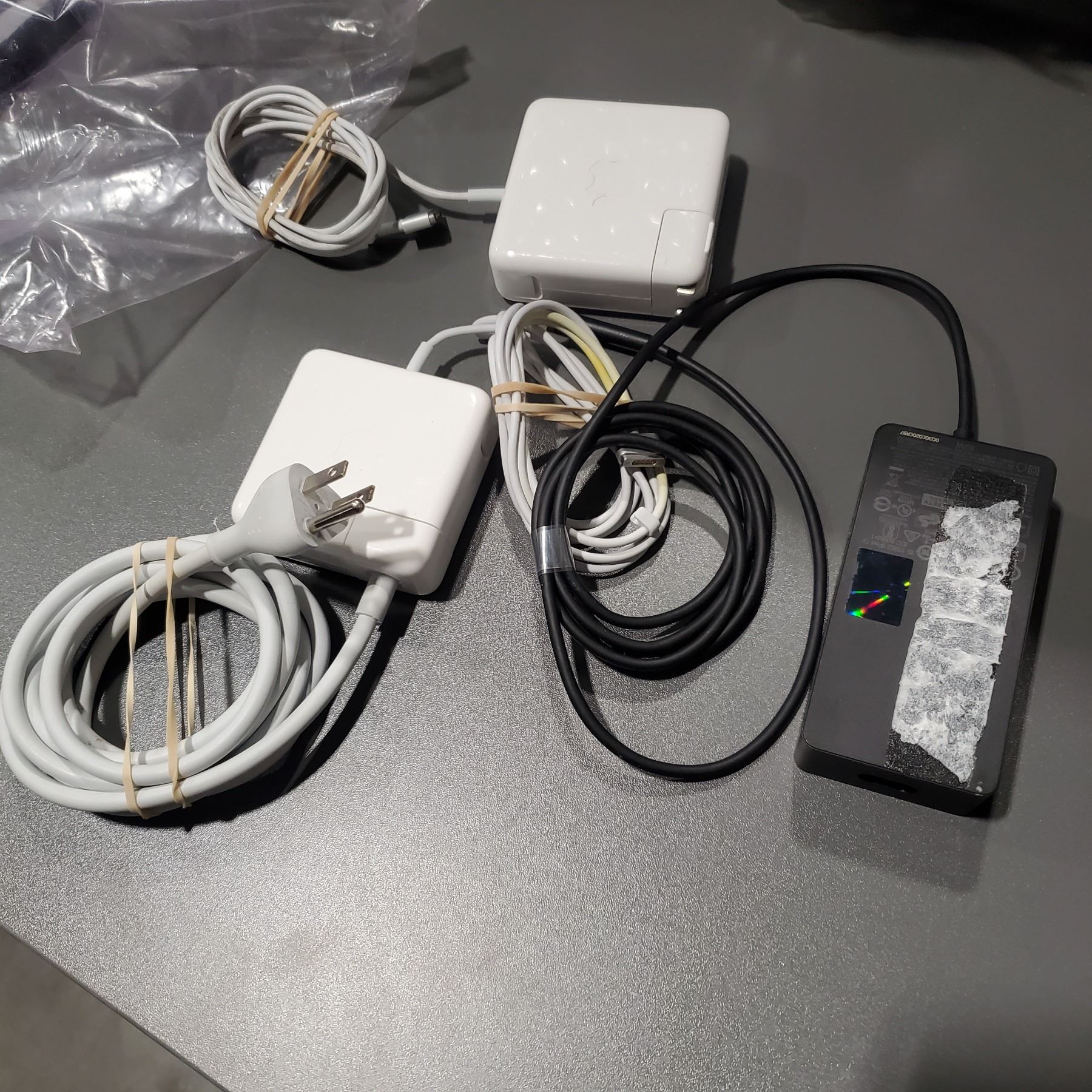 2 MACBOOK LAPTOP CHARGERS AND MICROSOFT SURFACE CHARGER