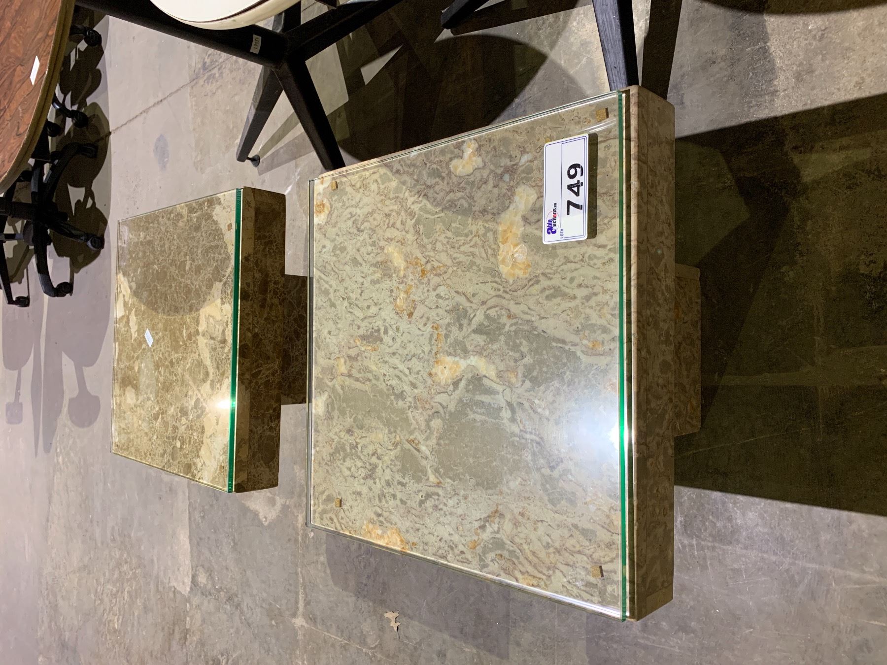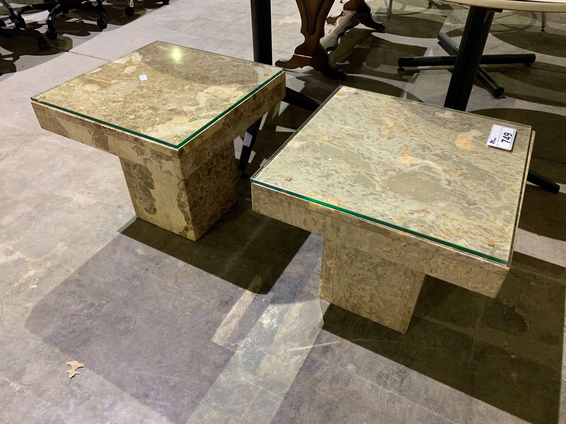 2 MARBLE GLASS TOP SIDE TABLES 19-1/2X19-1/2X18"