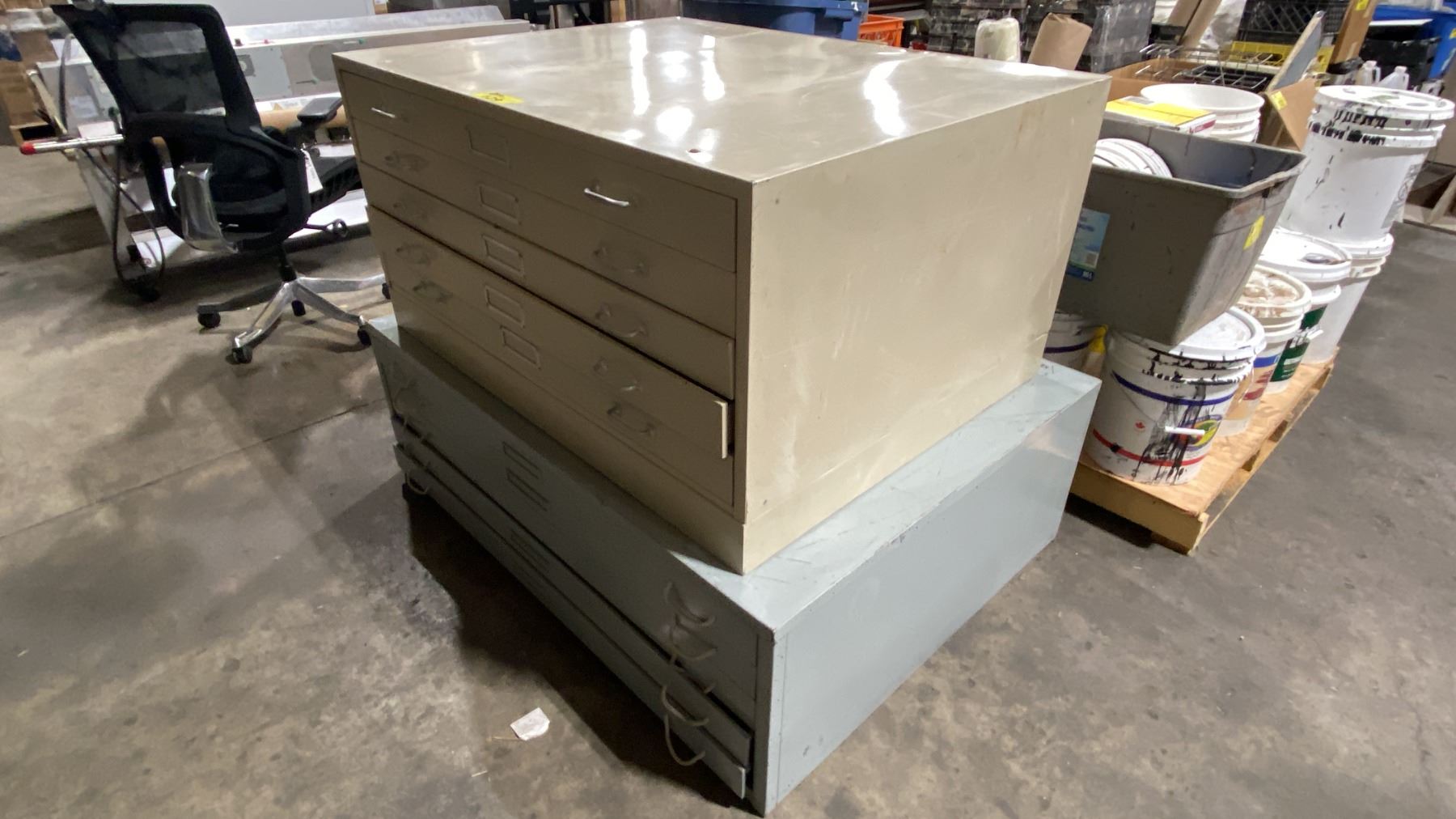 2 METAL INDUSTRIAL MAP FILING CABINETS