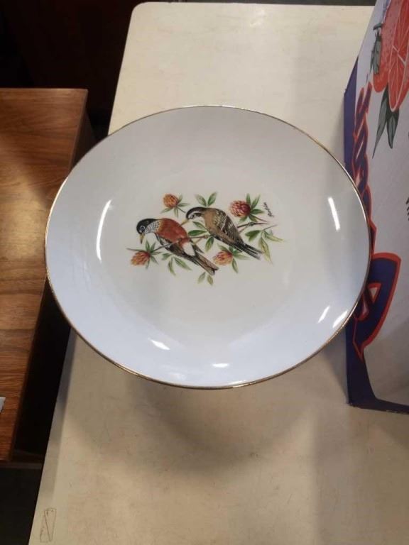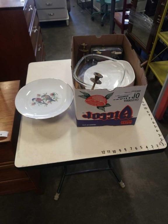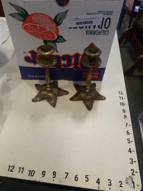 2 MICROWAVE SAFE CASSEROLE DISHES, 2 BRASS CANDLESTICKS AND BAVARIA GERMANY CAKE PLATTER