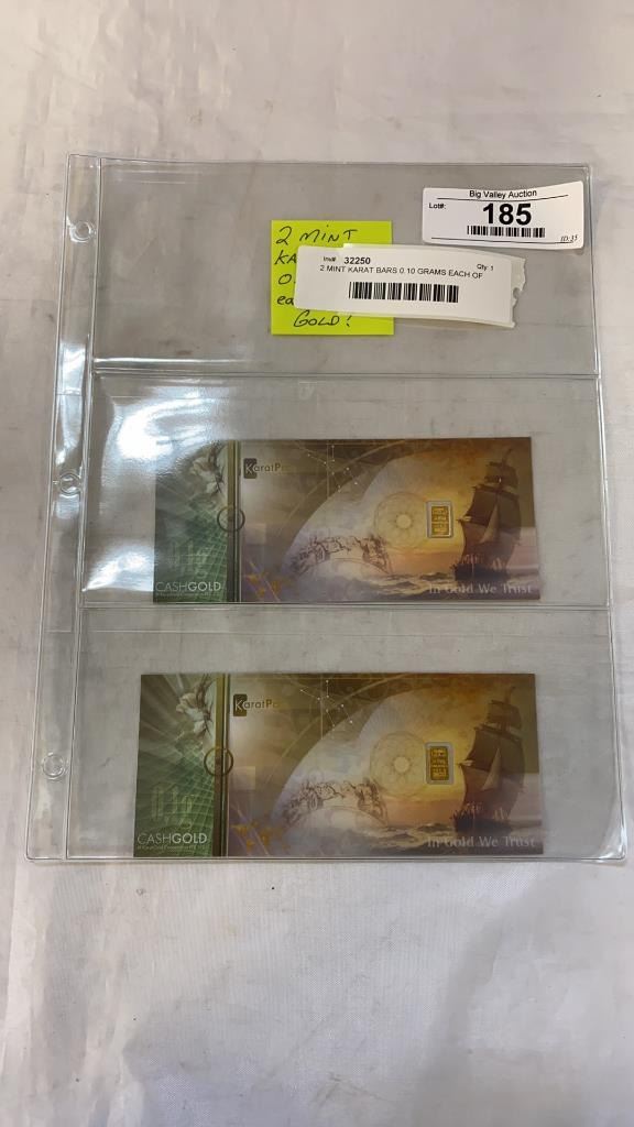 2 MINT KARAT BARS 0.10 GRAMS EACH OF FINE GOLD