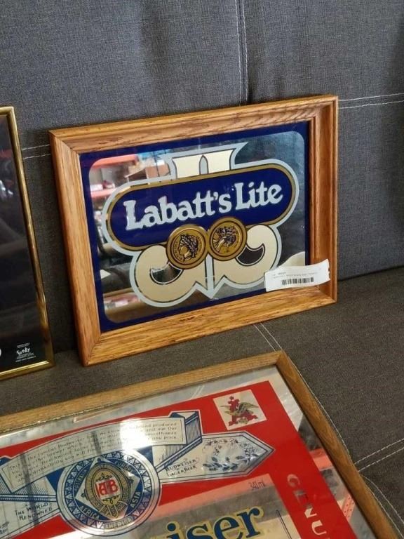 2 MIRRORED BEER SIGNS AND FRAMED JACK DANIELS
