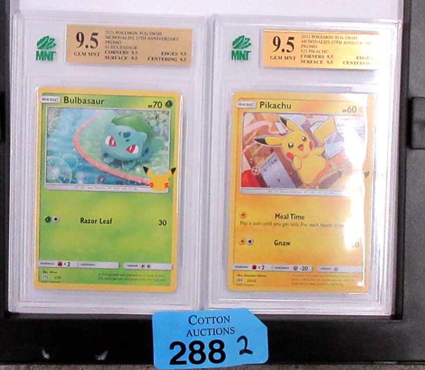 McDonald's 25th Anniversary Promo Cards - Graded 9.5 GEM MNT. #1 Bulbasaur, and #25 Pikachu. Hard protective cases.