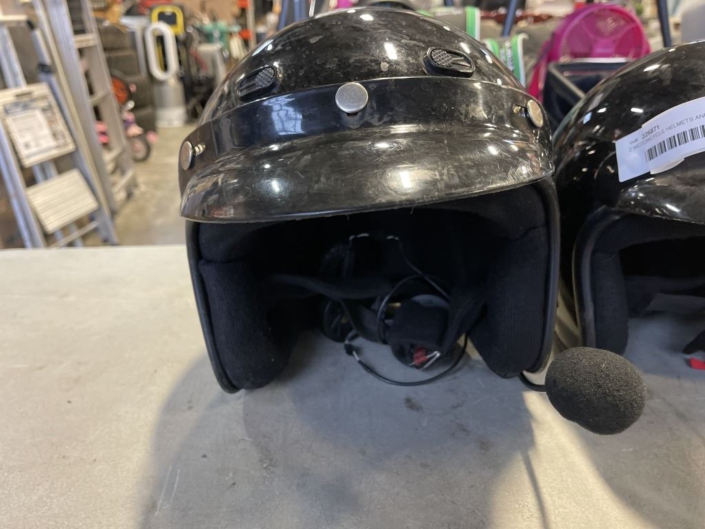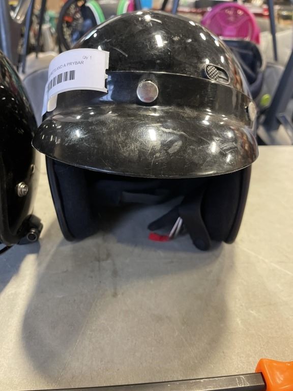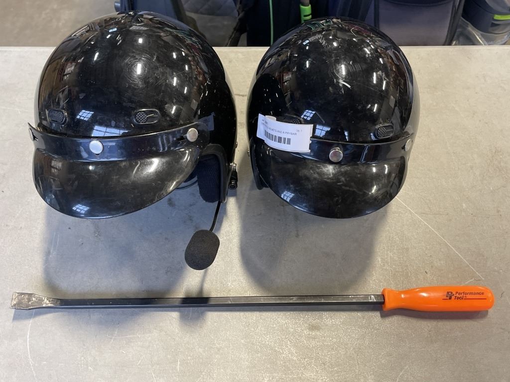 2 MOTORCYCLE HELMETS AND A PRYBAR