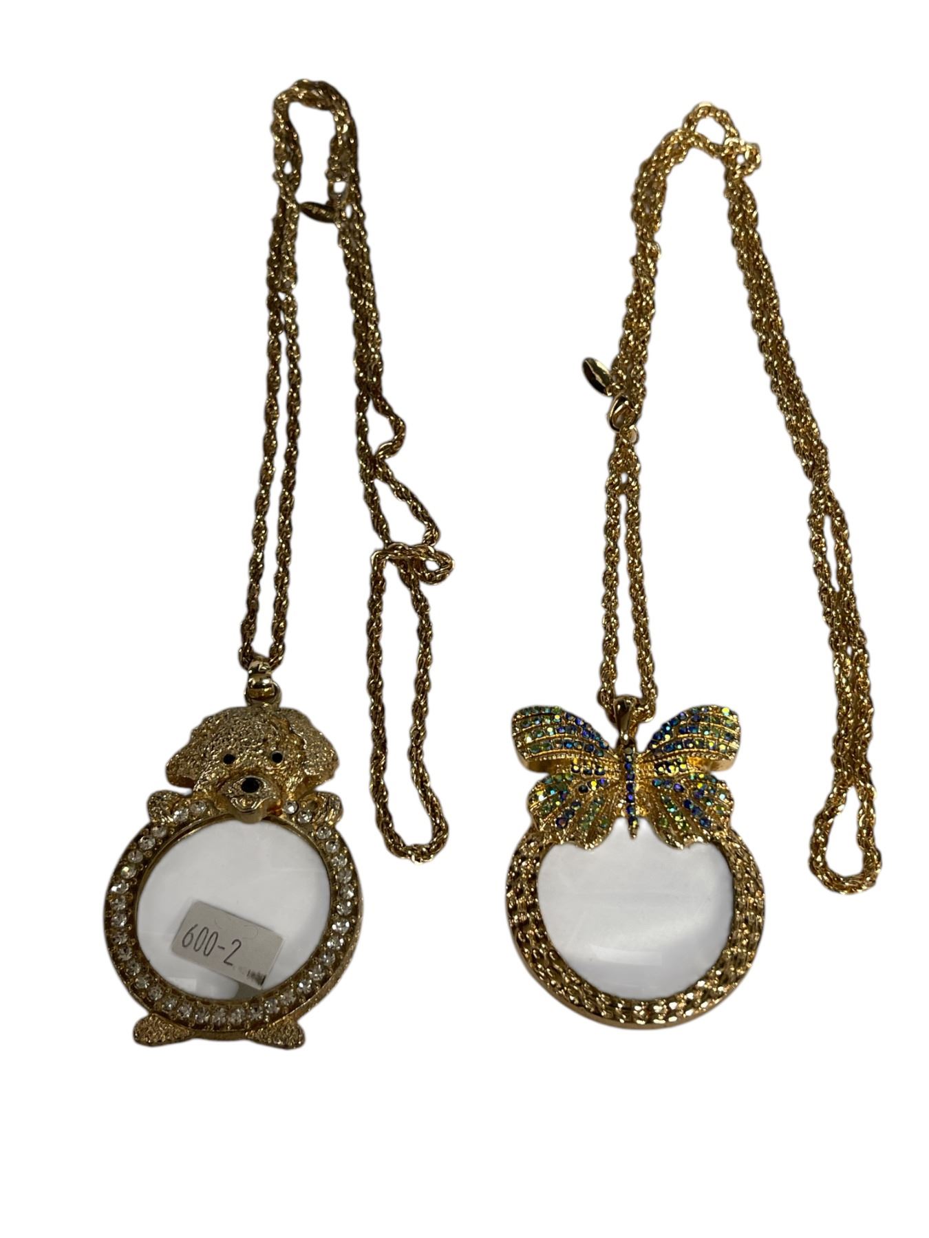 2 Magnifying Glass Necklaces: Dog & Butterfly Themed