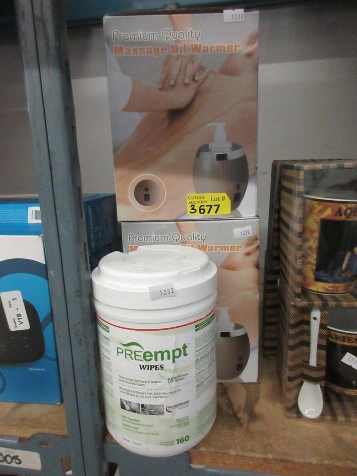 2 Massage Oil Warmers & Tub of Disinfecting Wipes