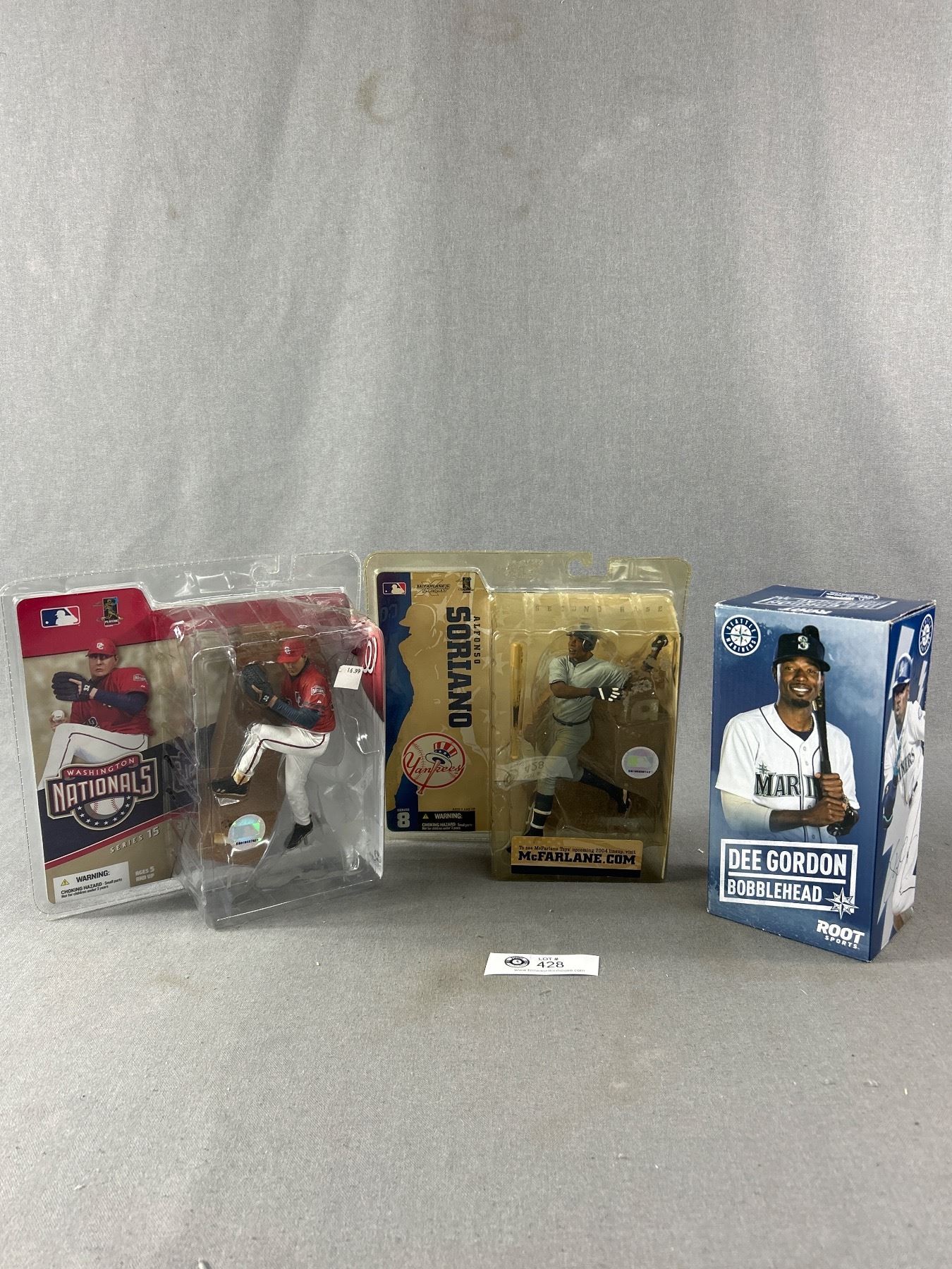 2 McFarlan Baseball Figures New in Package + Dee Gordon Bobble Head New in Box
