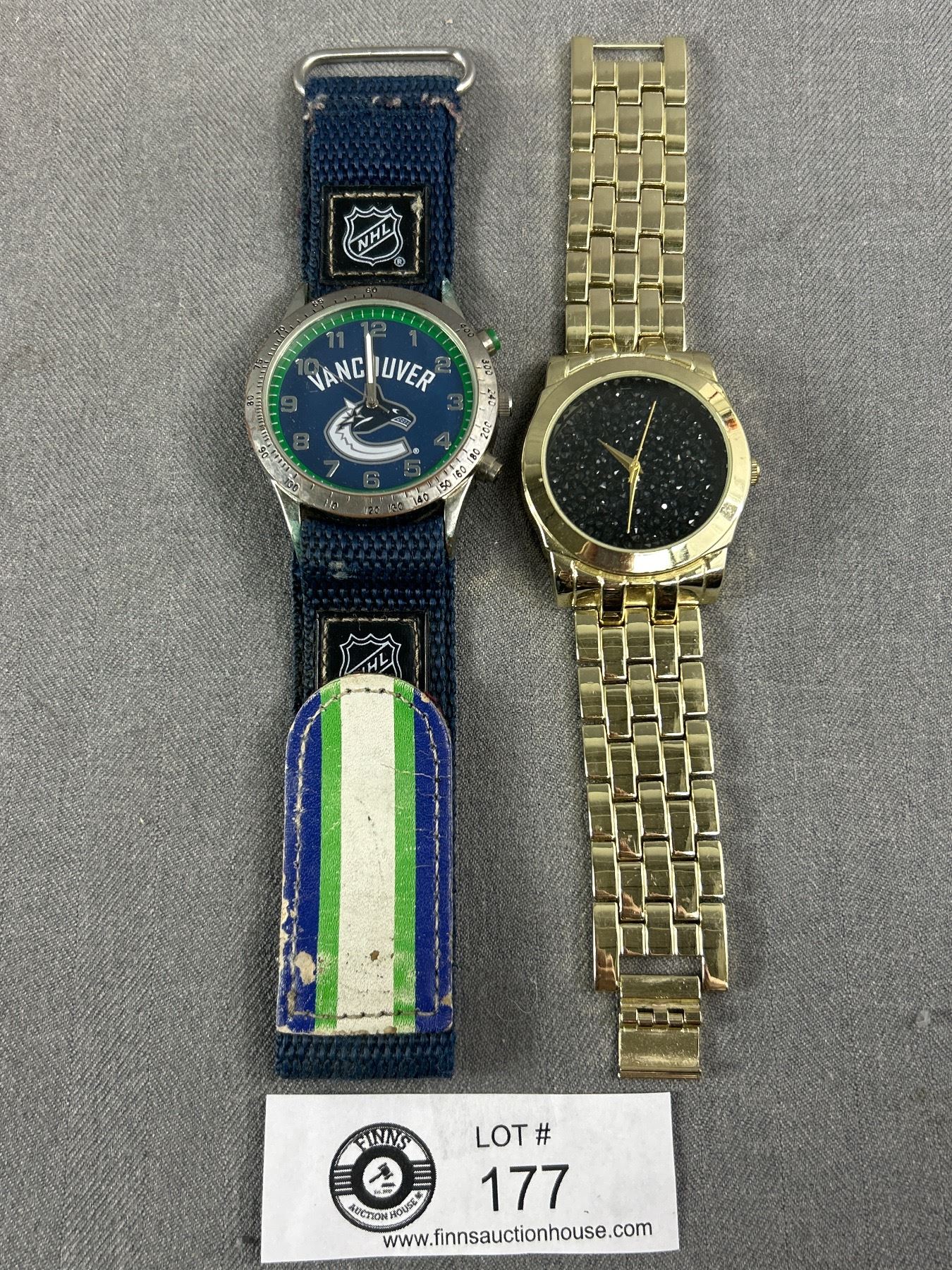 2 Men's Wrist Watches - Vancouver Canucks & Gold Tone Men's Watch w/ Black Stone Face