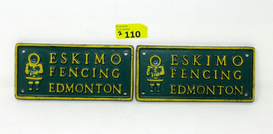 2 Metal "Eskimo Fencing Edmonton" Signs - 7.5" x 3.5"