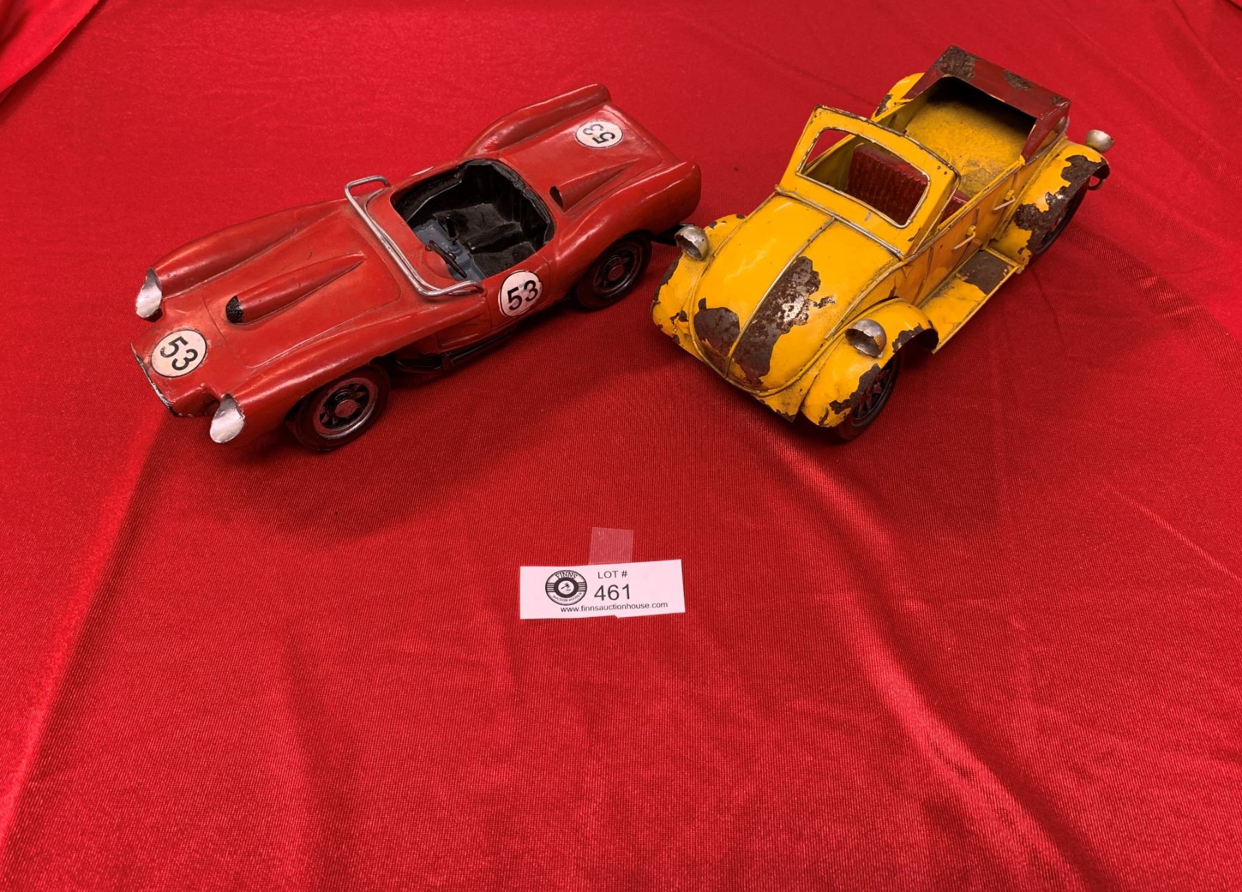 2 Metal Tin Cars Decoration Pieces Newer. Nice Look To Them