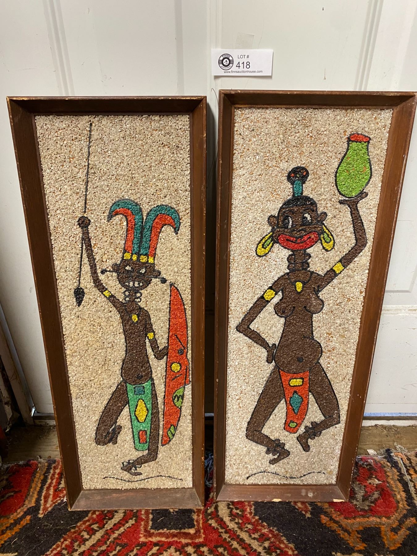 2 Mid Century Modern Gravel Art Pictures 9x25