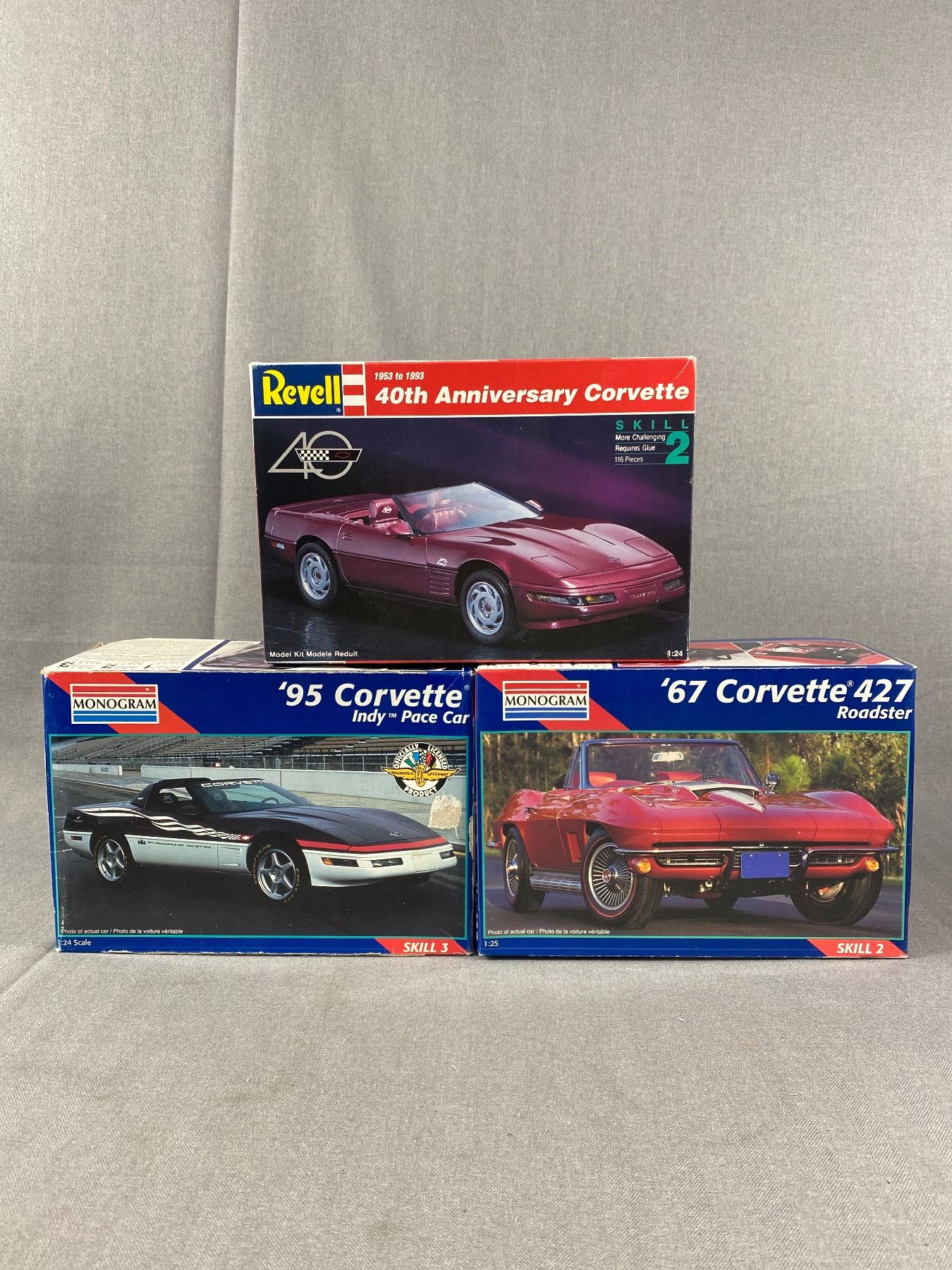 2 Monogram & 1 Revell 1/24 Scale Corvette Models