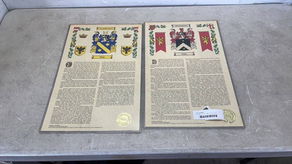 2 NAME COAT OF ARMS - PEIRCE AND WEISE WITH COAS