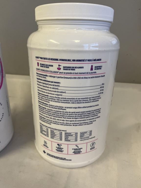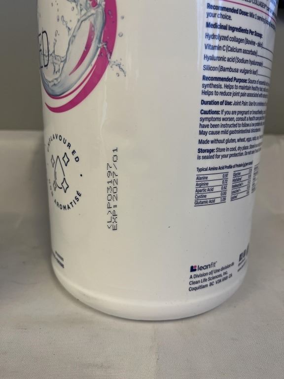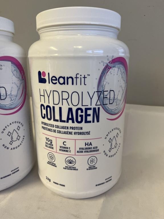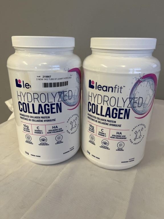 2 NEW 1KG TUBS OF LEANFIT HYDROLIZED COLLAGEN PROTEIN POWDER, EXPIRES 2027