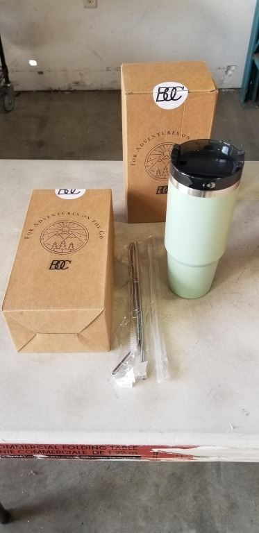 2 NEW 30.OZ STAINLESS DUAL WALL VACUUM INSULATED MUGS