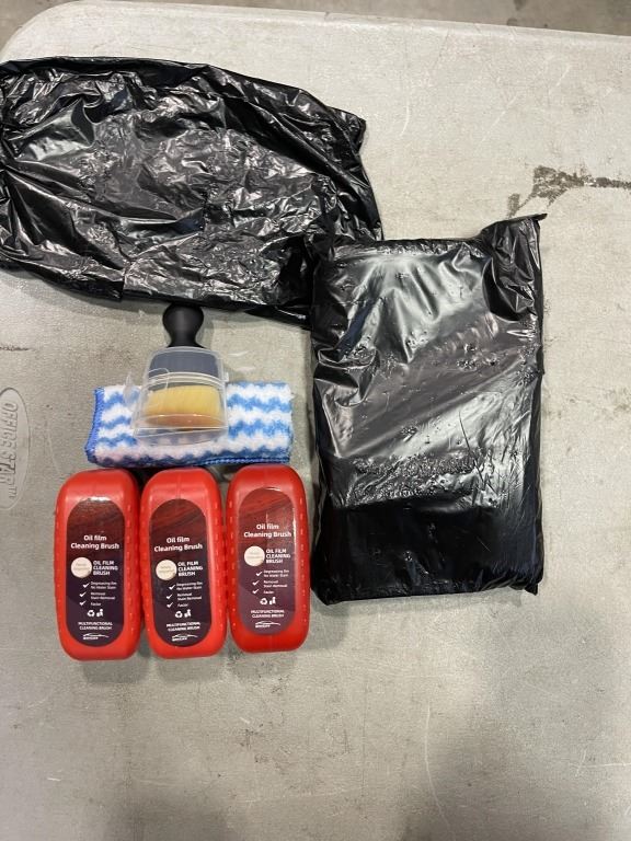 2 NEW 3PC SETS OF VEHICLE OIL AND FILM CLEANING BRUSHES WITH CLOTH, MULTI USE, 3 PER PACK