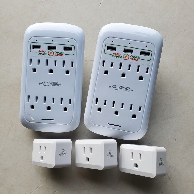 2 NEW 6 OUTLET/4 USB PLUGS WITH 3 NEW WIFI CONTROLLABLE SMART PLUGS RETAIL $95