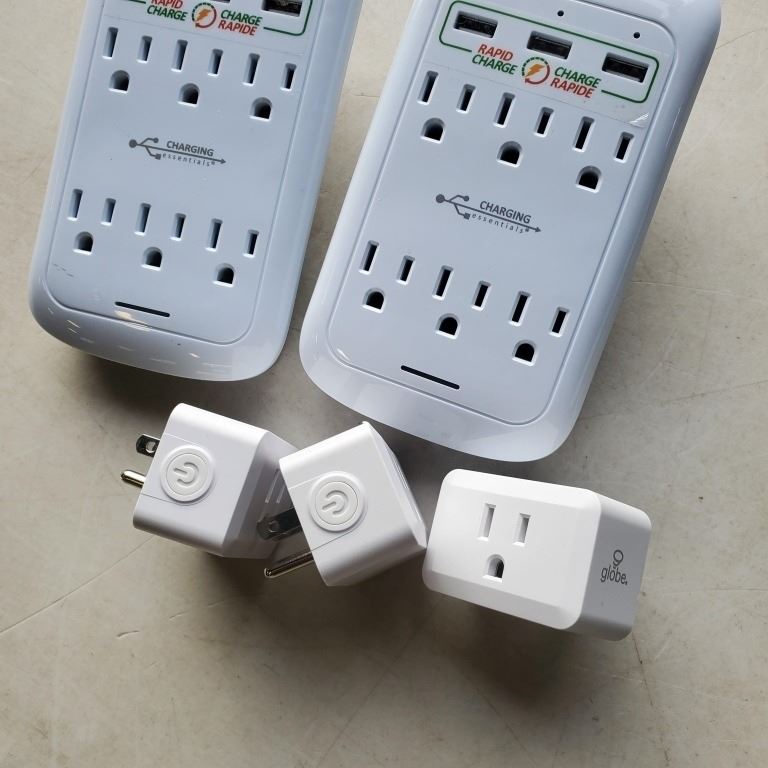 2 NEW 6 OUTLET/4 USB PLUGS WITH 3 NEW WIFI CONTROLLABLE SMART PLUGS RETAIL $95
