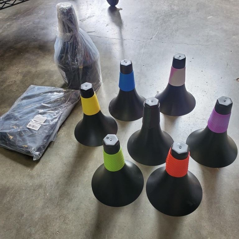 2 NEW 7 PC COLOR CODED PILON SETS AND MESH BALL BAGS BACKPACK