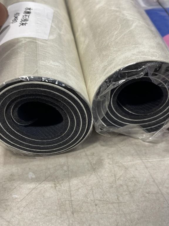2 NEW 70'S RETRO PINK AND BLUE SHOWER CURTAINS AND 2 NEW SUPER WATER ABSORBENT BATH MATTS, LIGHT GREY 16X31.5 INCH