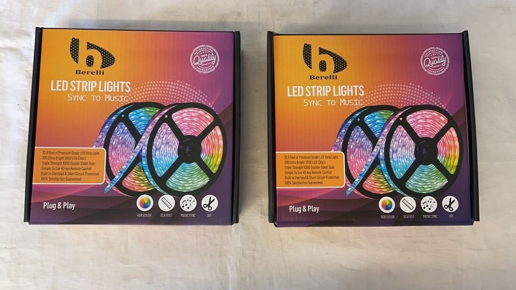 2 NEW BERELLI LED LIGHT STRIPS 32.8FT EACH, RGB COLOR AND MUSIC SYNC