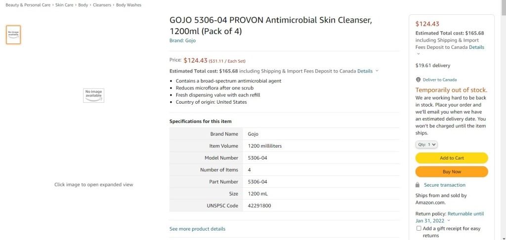 2 NEW BOXES OF GOJO 5306-04 PROVON Antimicrobial Skin Cleanser, 1200ml 4 IN A BOX RETAIL $124 PER BOX