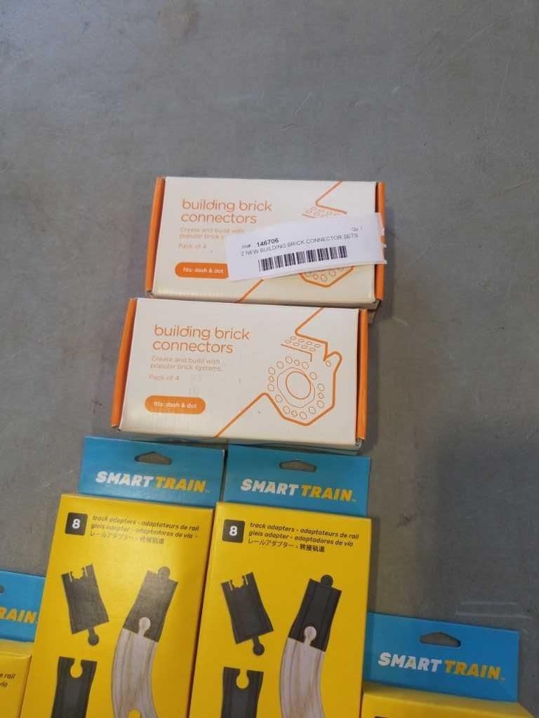2 NEW BUILDING BRICK CONNECTOR SETS AND 4 TRACK ADAPTER SETS