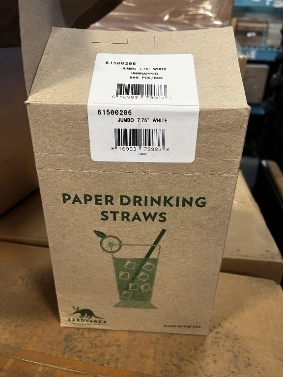 2 NEW CASE OF AARDVARK PAPER STRAWS, RETAIL $129, 7.75 INCH JUMBO WHITE, TOTAL 4,800PC PER BOX 600PC PER BOX, 8 BOX PER CASE