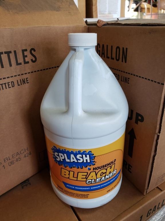 2 NEW CASES OF 6 US GALLON BOTTLES SPLASH HOUSEHOLD BLEACH CLEANER - 12 BOTTLES, 12 GALLONS TOTAL