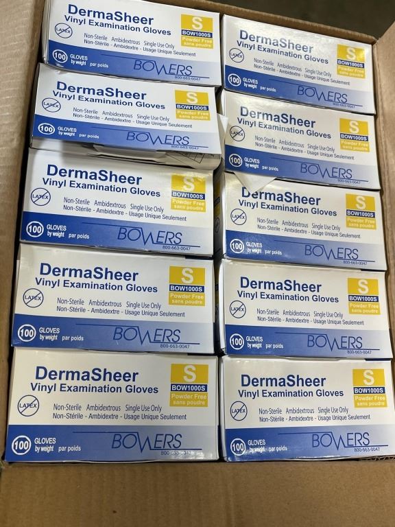 2 NEW CASES OF BOWERS VINYL GLOVES, SIZE SMALL, 1,000 GLOVER PER CASE