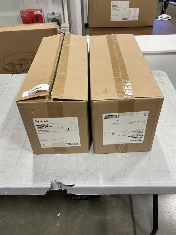 2 NEW CASES OF OVER HEAD COVER GOWNS - 120 PER CASE, 240 TOTAL
