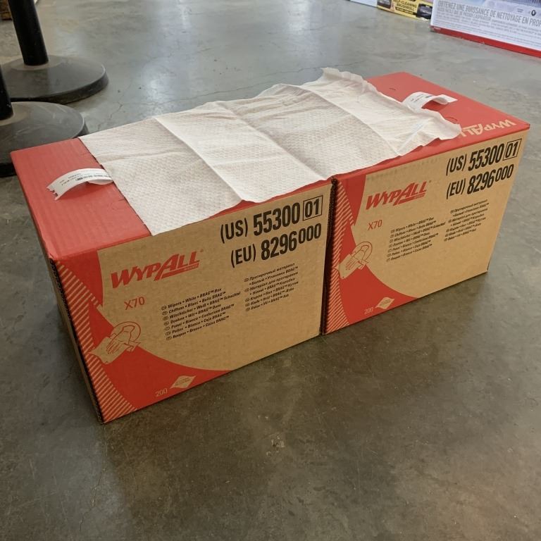 2 NEW CASES OF WYPALL BRAND WHITE WIPES, SIZE IS 11.1X16.8, 200 PER CASE, 400 TOTAL RETAIL $35 PER CASE