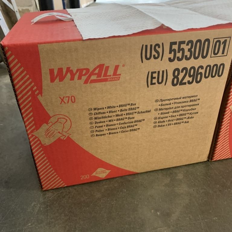 2 NEW CASES OF WYPALL BRAND WHITE WIPES, SIZE IS 11.1X16.8, 200 PER CASE, 400 TOTAL RETAIL $35 PER CASE