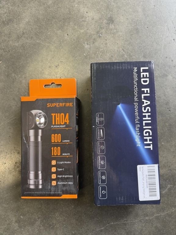 2 NEW FLASHLIGHTS - LED MULTIFUNCTIONAL LIGHT AND SUPERFIRE TH04, RETAIL $40 EACH