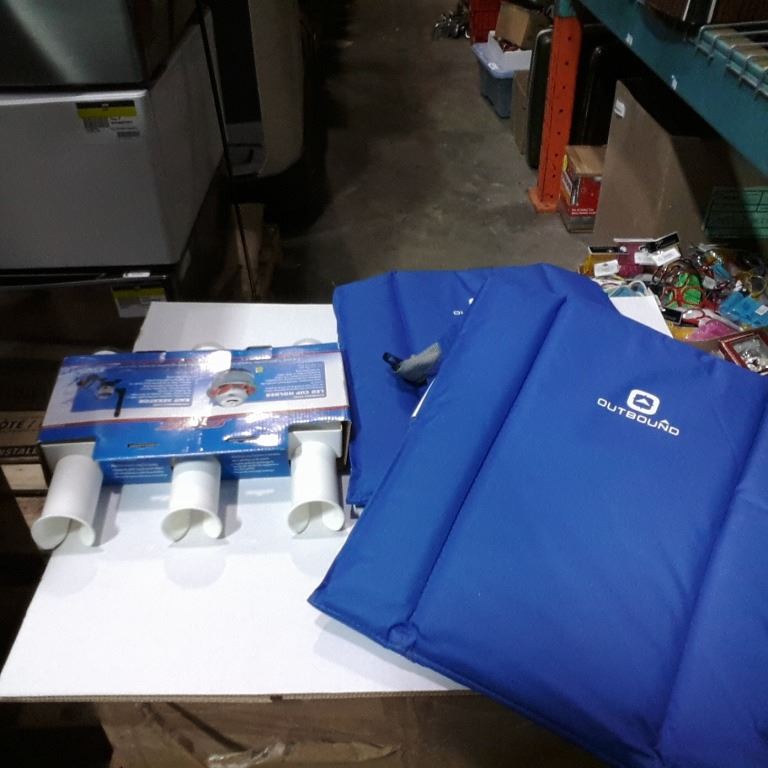 2 NEW FOLDING CAMP SEAT PADS AND SEASENSE ROD HOLDER