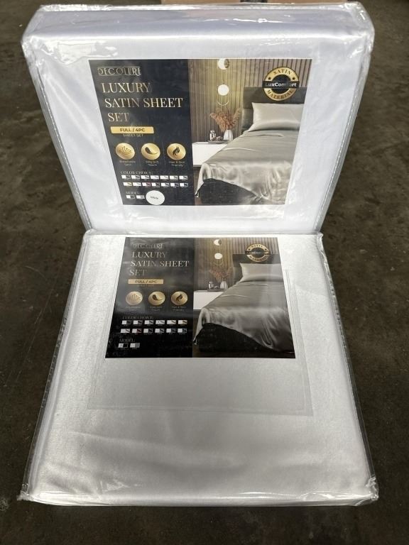 2 NEW FULL SIZE 4PC LUXURY SATIN SHEET SETS, WHITE