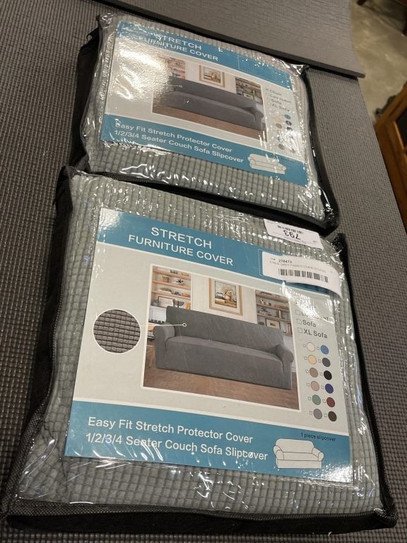 2 NEW GREY FABRIC CHAIR COVERS