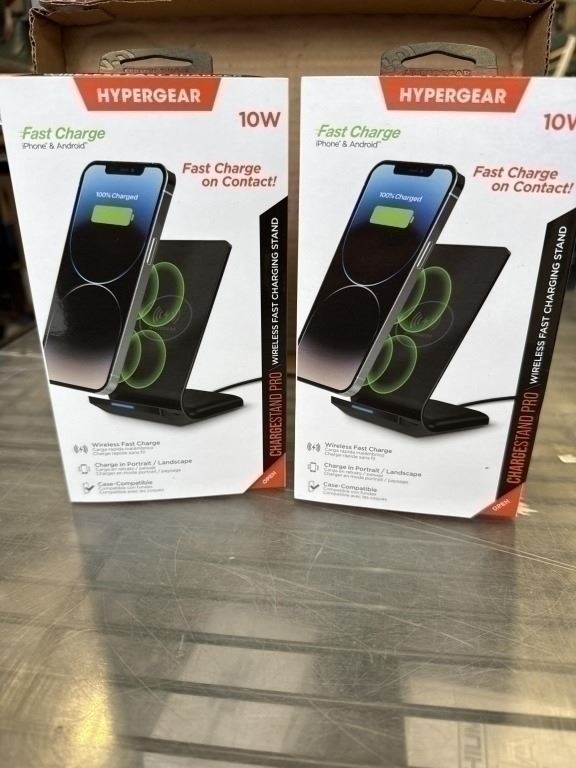2 NEW HYPERGEAR FAST CHARGE WIRELESS CHARGERS, WORKS IN PORTRAIT OR LANDSCAPE, CASE COMPATIBLE, INCL