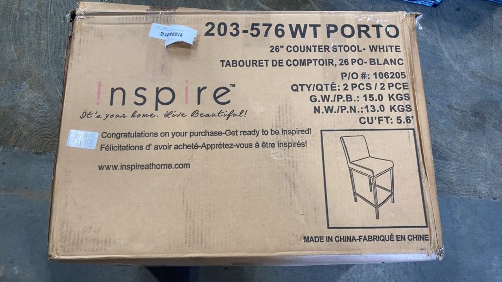 2 NEW INSPIRE 26 INCH COUNTER STOOLS - WHITE - RETAIL $499
